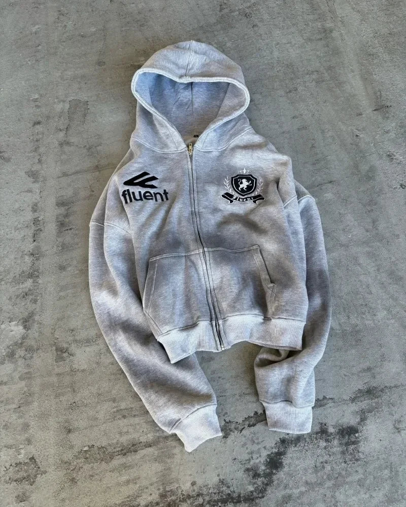 Ten dresowy set to idealny wybór na chłodniejsze dni. Wykonany z miękkiego, ocieplanego materiału typu fleece, zapewnia maksymalny komfort i ciepło niezależnie od okazji. Bluza z pełnym zamkiem i kapturem gwarantuje swobodę i funkcjonalność, a spodnie o luźnym kroju dodają luzu i streetowego charakteru.
