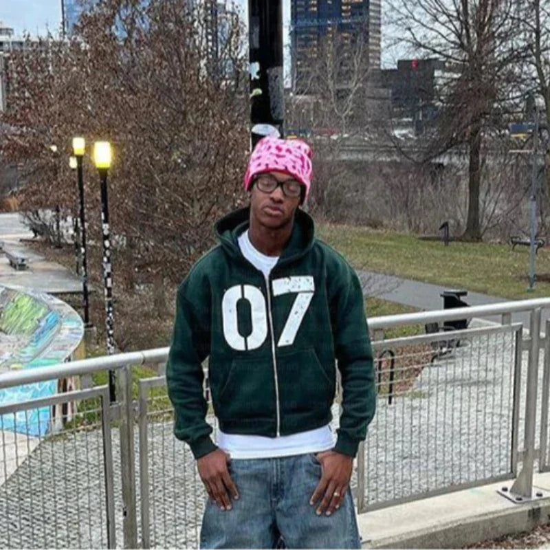 Styl: streetwear / retro Y2K – idealny do sneakersów, bomberki i czapki typu beanie.